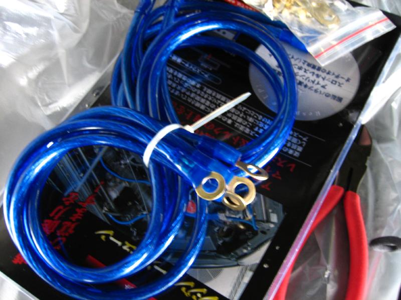 左下に見えるアーシング、コーナンで買った激安アーシングセットです!!